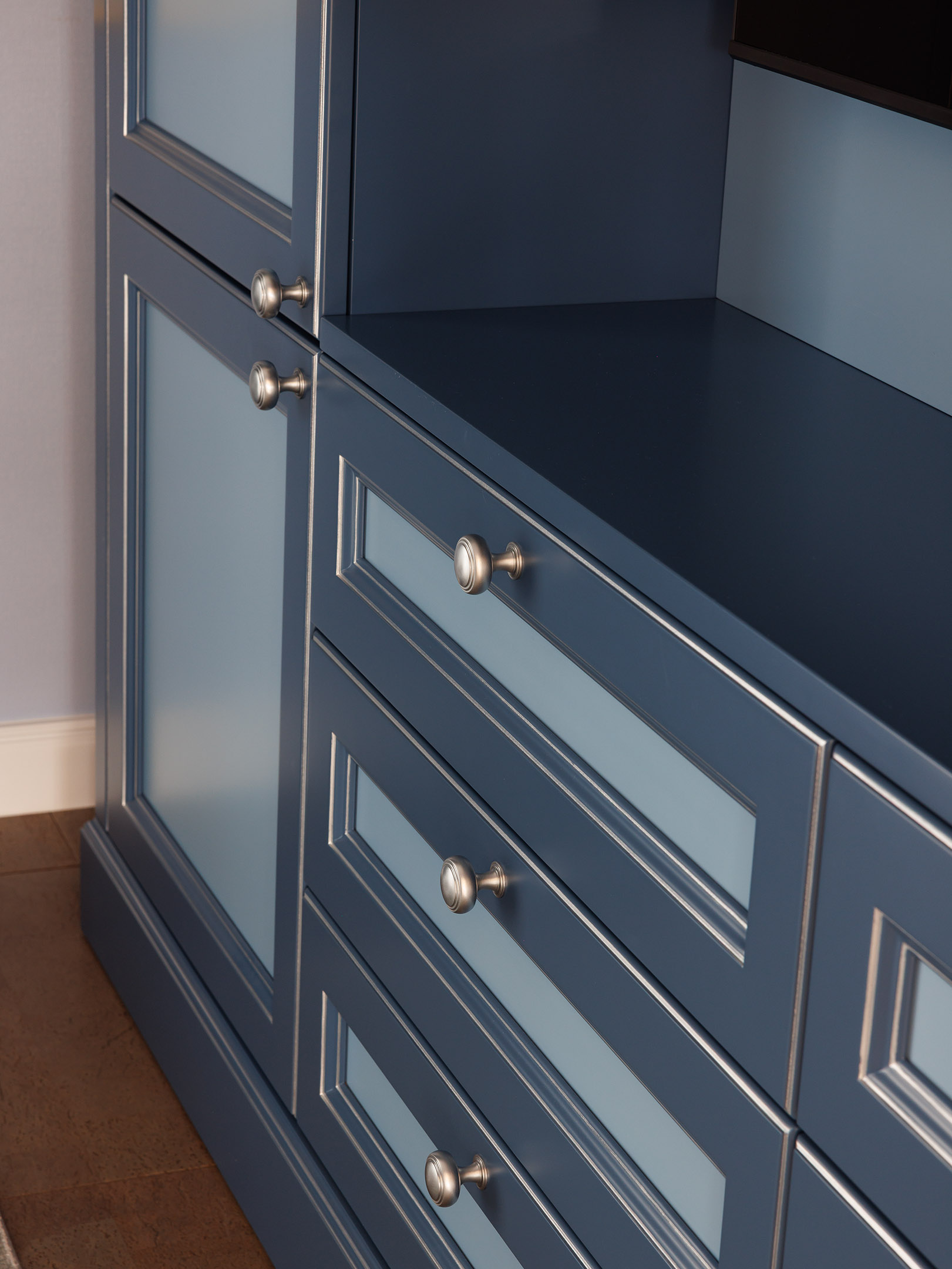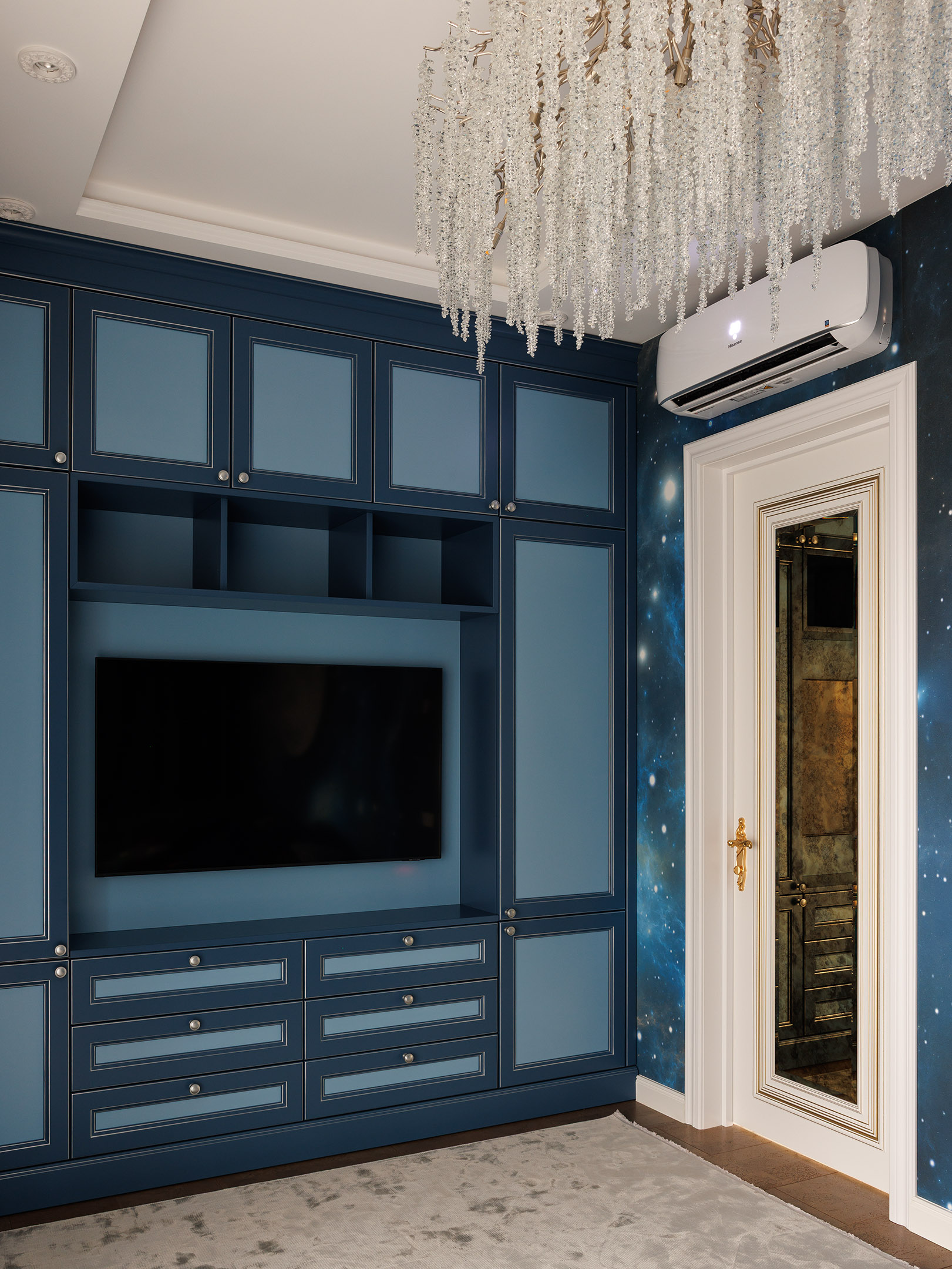 Мы разработали мебель и для детских комнат — шкафы и композиции с индивидуально подобранными цветовыми акцентами.