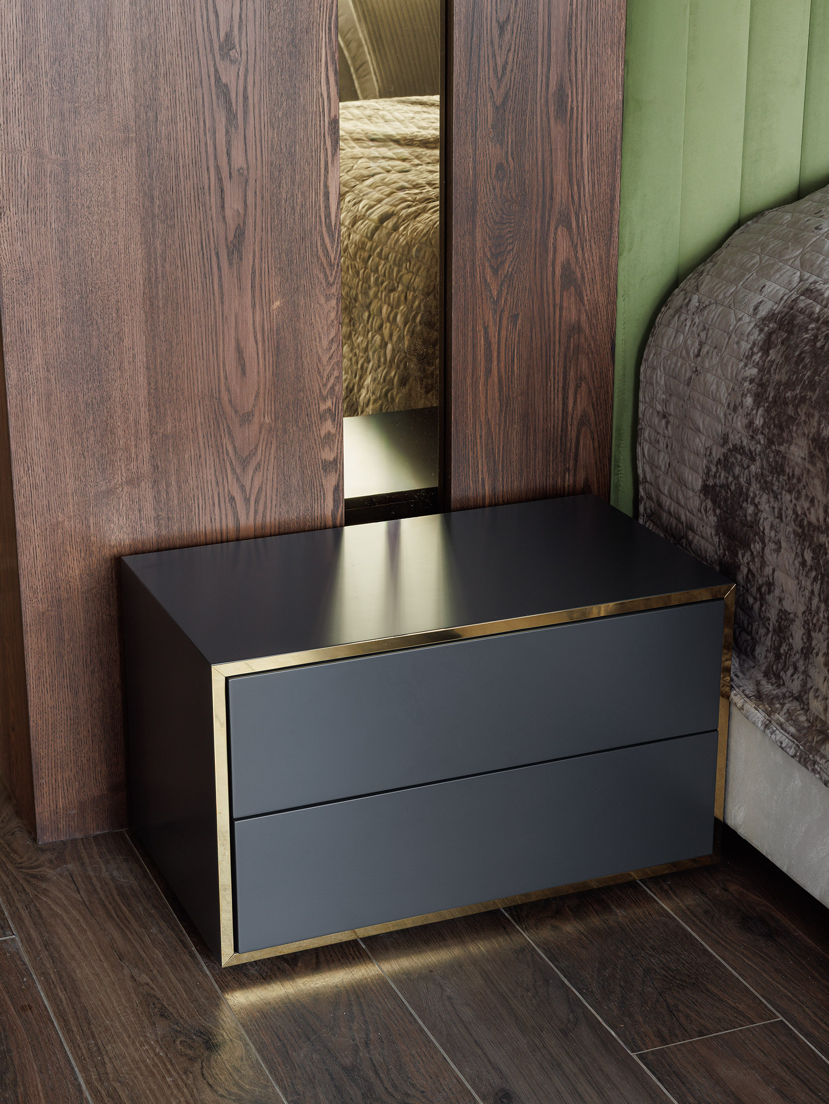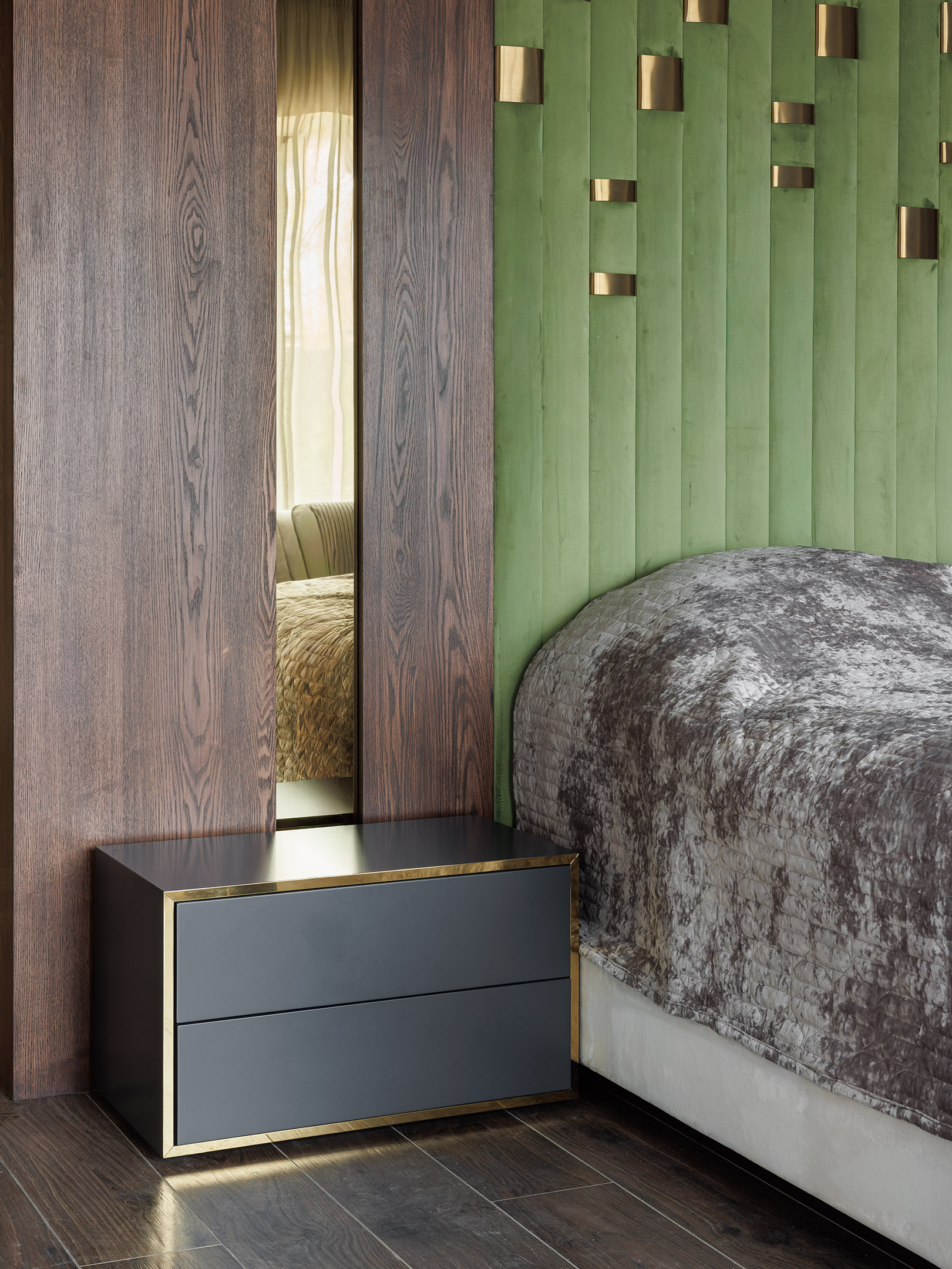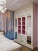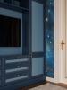 Там же расположена гостевая комната, для которой мы изготовили платяной шкаф оригинального дизайна и прикроватные тумбы.