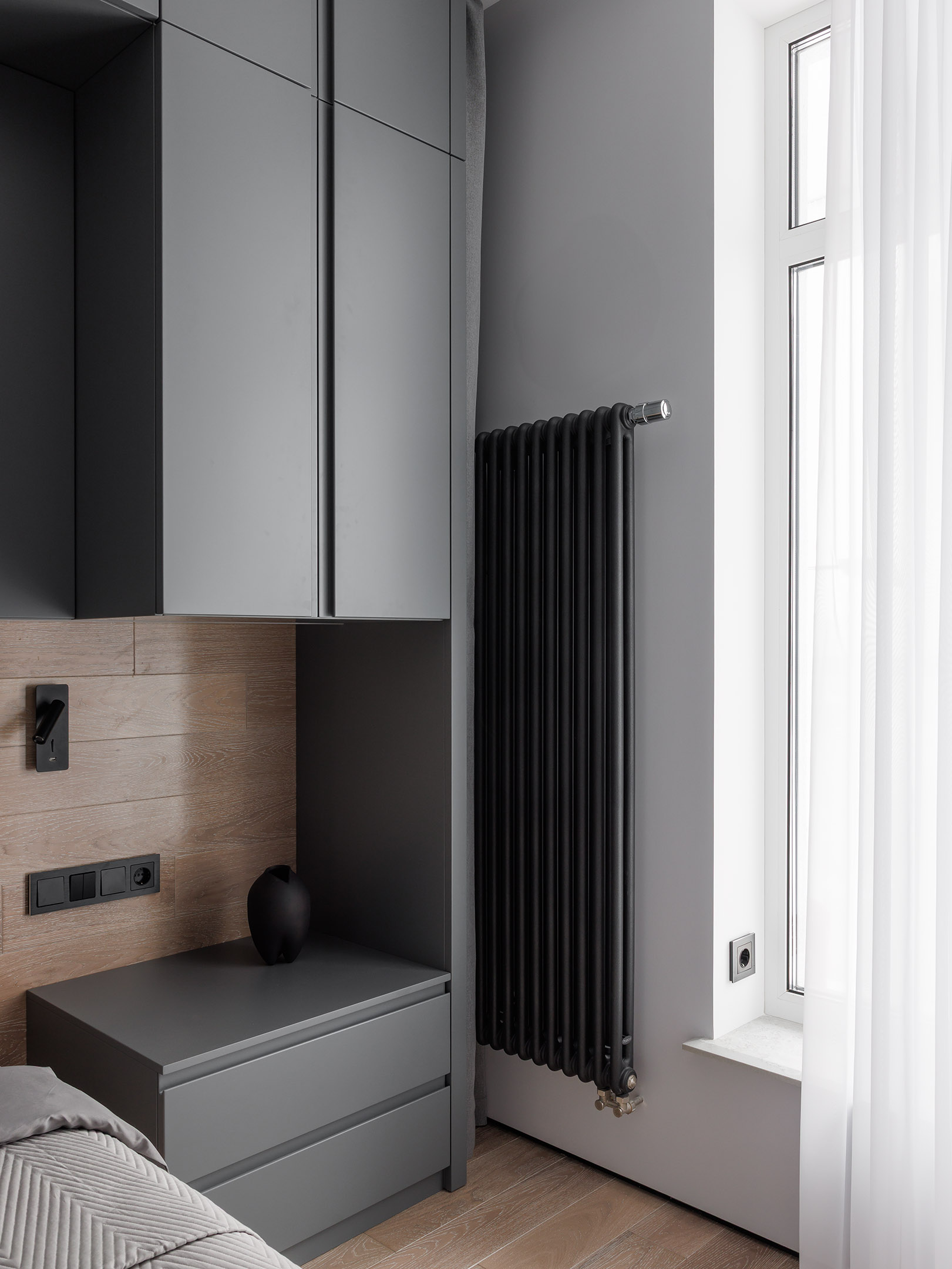 В этой квартире в доме «На Васильевском острове» мы реализовали несколько комплектов корпусной мебели.