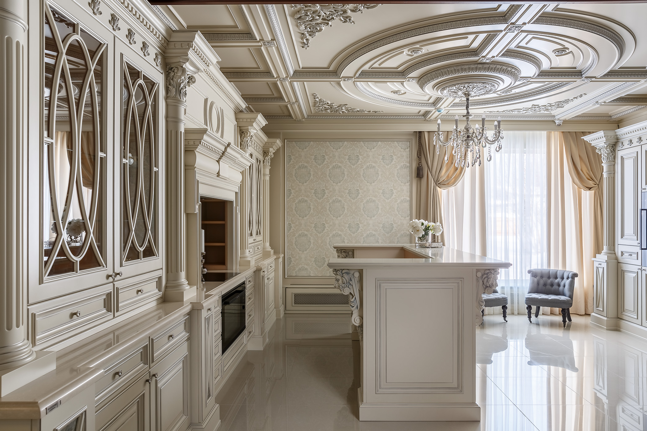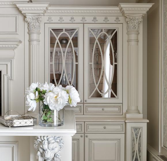 Эта классическая кухня, олицетворение роскоши и элегантности, была изготовлена для нашего шоурума на производстве. Каждая деталь пропитана атмосферой классического стиля. Великолепная двойная патина придает этой кухне уникальный шарм. Резьба из массива бука выполнена вручную мастерами нашей фабрики. Вставки из натурального оникса являются не только элементом декора, но и проявлением изысканности и утонченного вкуса.
