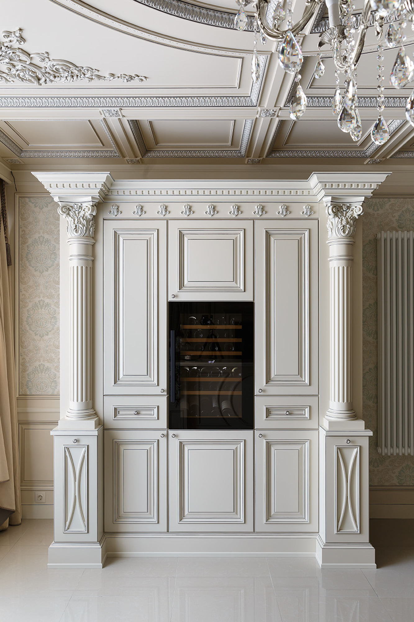 Эта классическая кухня, олицетворение роскоши и элегантности, была изготовлена для нашего шоурума на производстве. Каждая деталь пропитана атмосферой классического стиля. Великолепная двойная патина придает этой кухне уникальный шарм. Резьба из массива бука выполнена вручную мастерами нашей фабрики. Вставки из натурального оникса являются не только элементом декора, но и проявлением изысканности и утонченного вкуса.